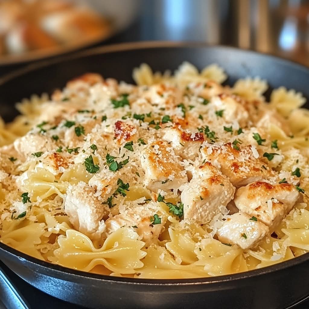 Return chicken and pasta to the pan. Toss to coat evenly.