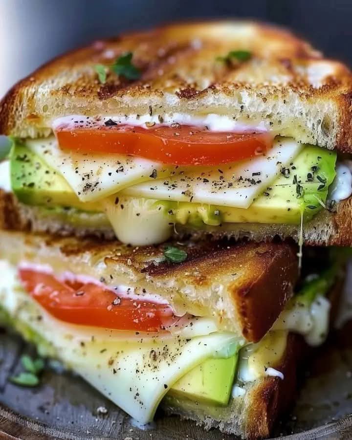 This grilled cheese variation combines the creamy texture of avocado with the fresh taste of tomato and the rich, melty mozzarella cheese. Itβs perfect for a quick and satisfying meal. Enjoy!