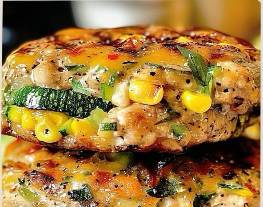 In a large bowl, combine ground chicken, zucchini, corn, red bell pepper, garlic, egg, breadcrumbs, and seasoning. Mix gently until just combined. - Form Patties: