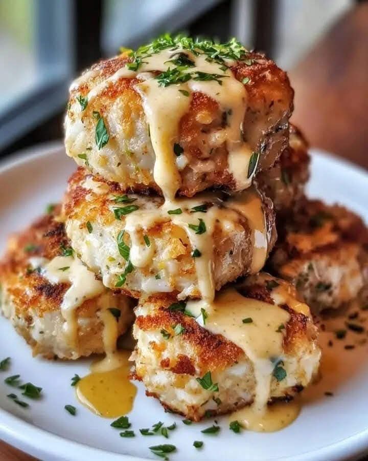 Enjoy these delicious Cheddar Bay Crab Cakes with a tangy lemon butter drizzle for a delightful coastal-inspired meal!