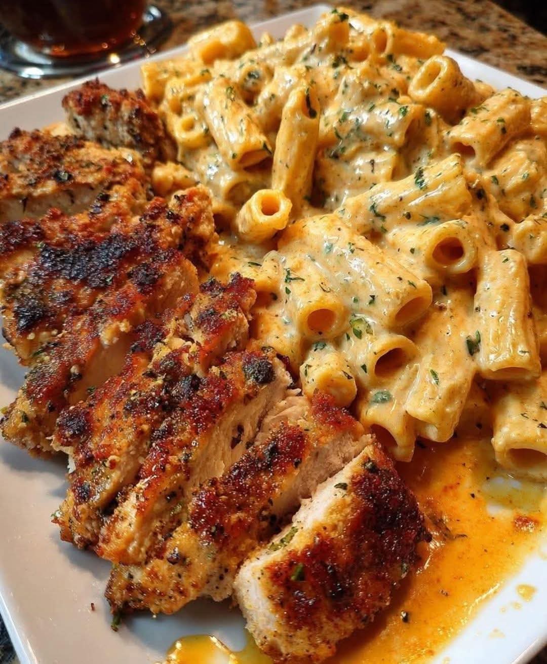 - Return the rigatoni and chicken to the skillet. Toss to coat and let it simmer for a few minutes so everything blends together.