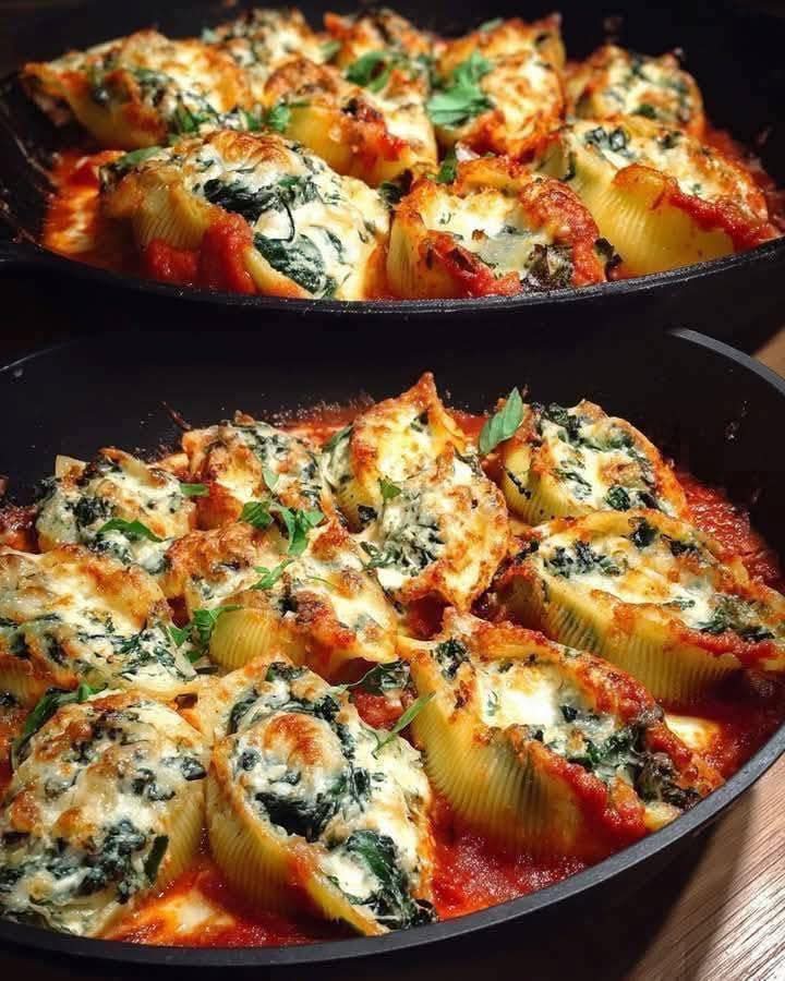 These stuffed shells are comfort food at its best — tender pasta filled with creamy cheese and spinach, baked in marinara until bubbling. This easy dish is ideal for gatherings or a make-ahead family dinner. It’s rich yet balanced, thanks to the fresh greens and sharp Parmesan.