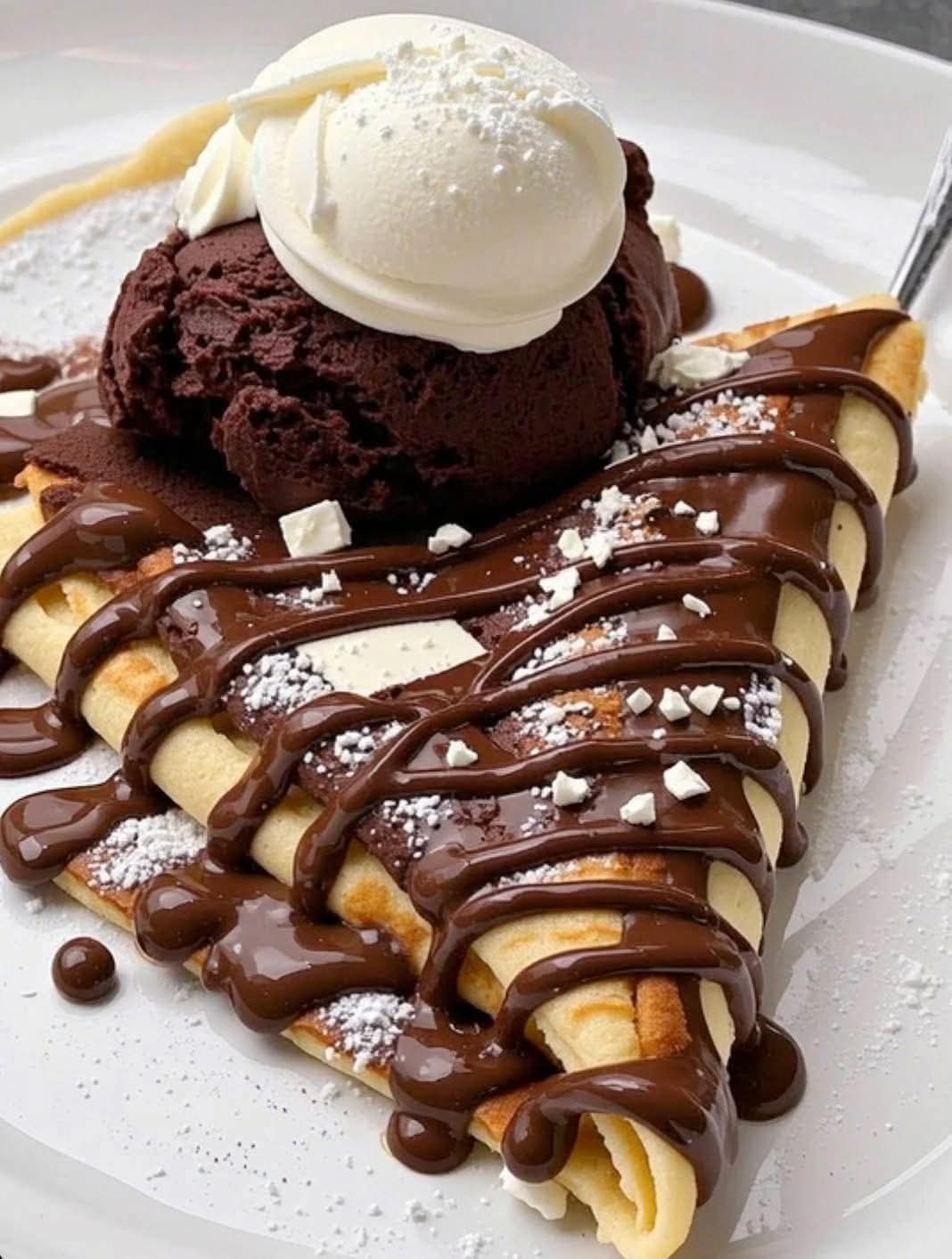 Drizzle with chocolate sauce, top with whipped cream, and garnish with fruit, nuts, or powdered sugar.