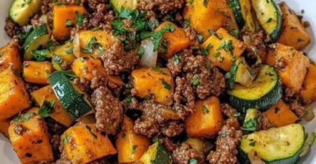 Stir in diced tomatoes, oregano, basil, salt, and black pepper. Simmer for 5 minutes.