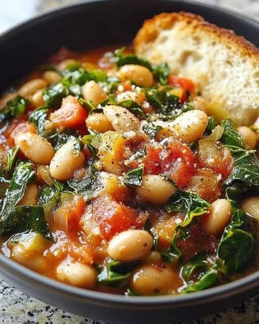 Add cannellini beans and escarole. Pour in vegetable broth and stir to combine.