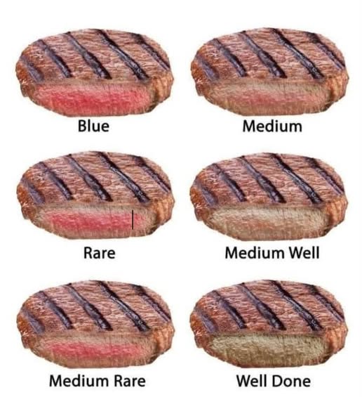 - Ribeye / NY Strip – Best medium rare to medium