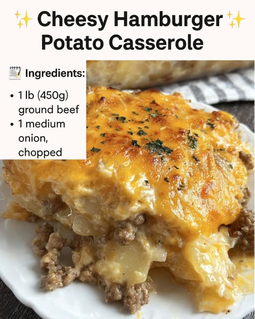 If you’re craving comfort food that’s rich, hearty, and irresistibly cheesy, the Cheesy Hamburger Potato Casserole is the dish you’ve been searching for. This mouthwatering, layered casserole combines juicy ground beef, tender potatoes, a creamy mushroom sauce, and a golden cheddar cheese topping — making it the perfect one-dish meal for family dinners or cozy gatherings.