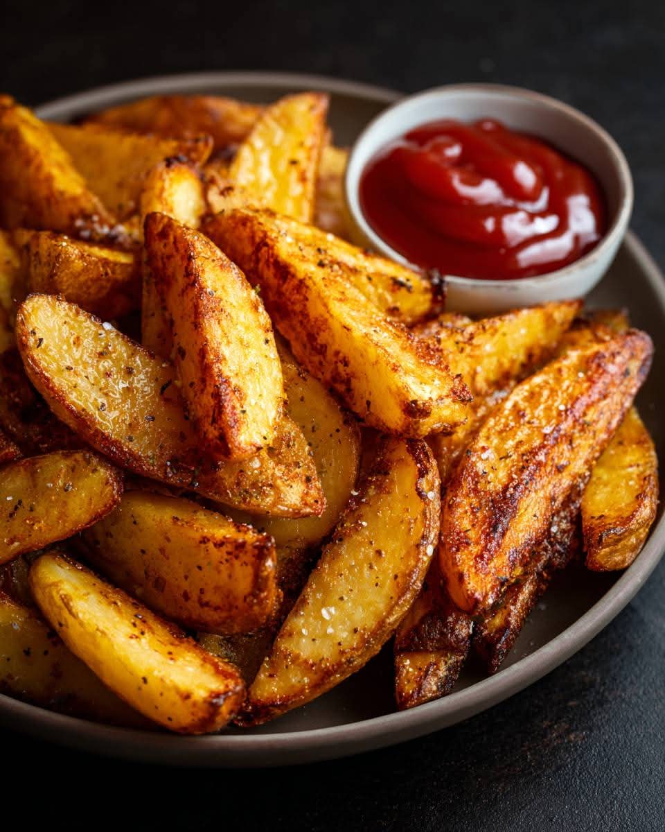 Spread wedges in a single layer on the baking sheet, ensuring they don’t touch. Bake at 425°F (220°C) for 25–30 minutes, flipping halfway. They should be golden brown and crisp on the outside, tender on the inside.