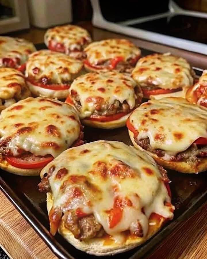 This recipe brings together juicy burger patties, rich pizza sauce, melted cheese, and classic toppings, all served in soft mini buns.