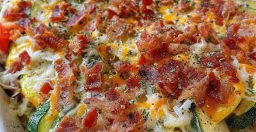 A hearty and cheesy dish that showcases the fresh flavors of zucchini, yellow squash, tomatoes, and crispy bacon, all baked…